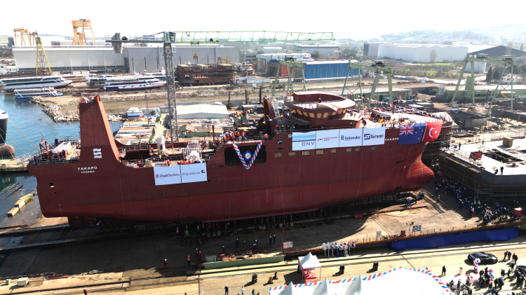 Altınova Tersaneler Bölgesindeki Tersan Tersanesi, Solander Grubu’na ait olan Aurora Fisheries için inşa ettiği yeni nesil fabrika balıkçı gemisi NB1124 inşa no’lu Takapo’yu denize indirdi.