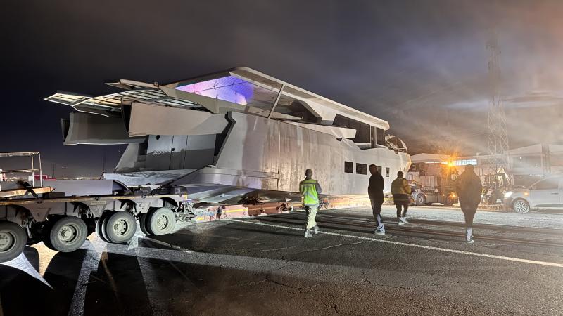 Van'dan İstanbul'a yaklaşık 45 tonluk gemiyi götürmek için yola çıkan Serkan Şengül idaresindeki plakalı tırın dorsesi, Erzurum-Artvin kara yolunda manevra sırasında yola oturdu.