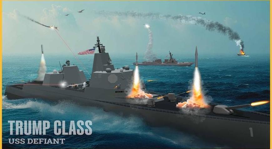 Trump, Florida’daki malikanesinde düzenlenen etkinlikte, donanmanın geleceğini şekillendirmeyi amaçlayan yeni bir savaş gemisi vizyonunu duyurdu. “Trump-class” olarak adlandırılan bu yeni gemi sınıfının ilk örneği olması planlanan USS Defiant için hazırlanan görseller, yapılan bu etkinlikte sergilendi. Yayınlanan görsele baktığımızda geminin dalgalı denizleri yararak ilerlerken, güvertesinden lazer silahı ateşlediği gözüküyor. Bir başka görselde ise gemi, Özgürlük Heykeli önünden geçerken gösterildi.