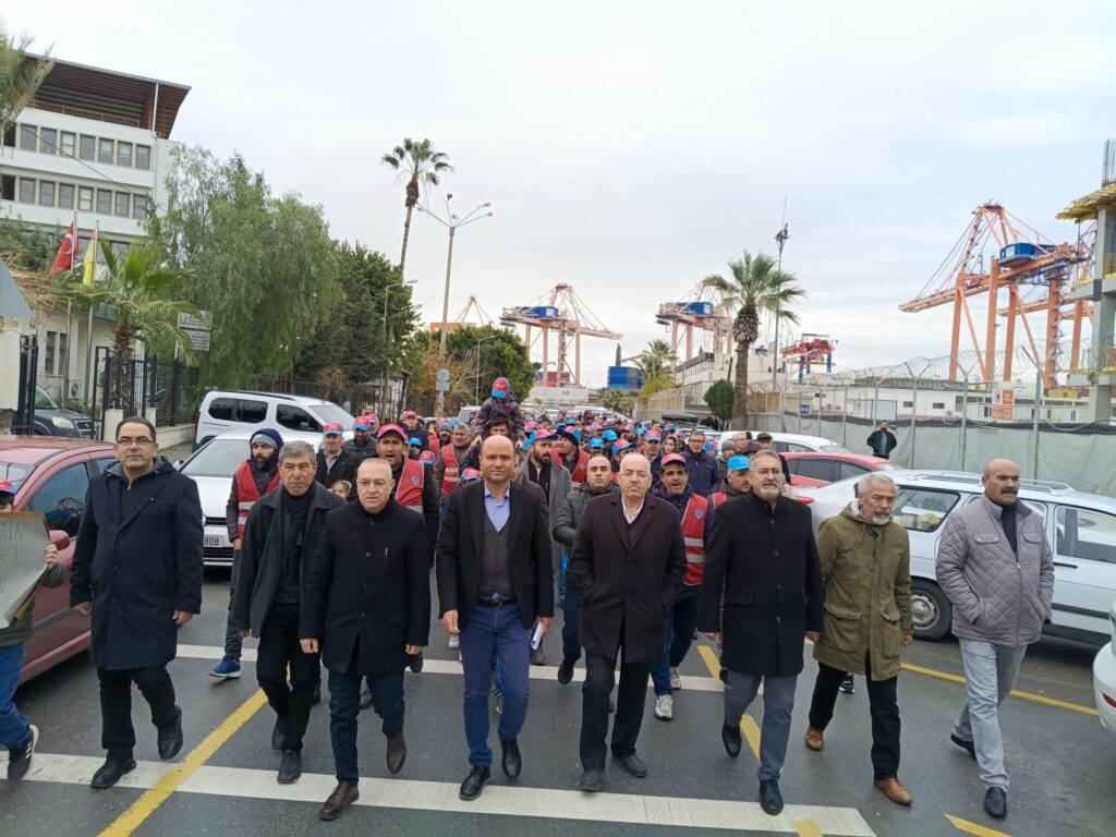 Göksoy, direnişin yalnızca liman işçilerinin değil, tüm emek kesimlerinin meselesi olduğunu ifade etti: “Bu mesele sadece sizin meseleniz değil. Siz burada direnirken yalnız değilsiniz. Emekten, demokrasiden yana olan herkes sizin yanınızda.”
