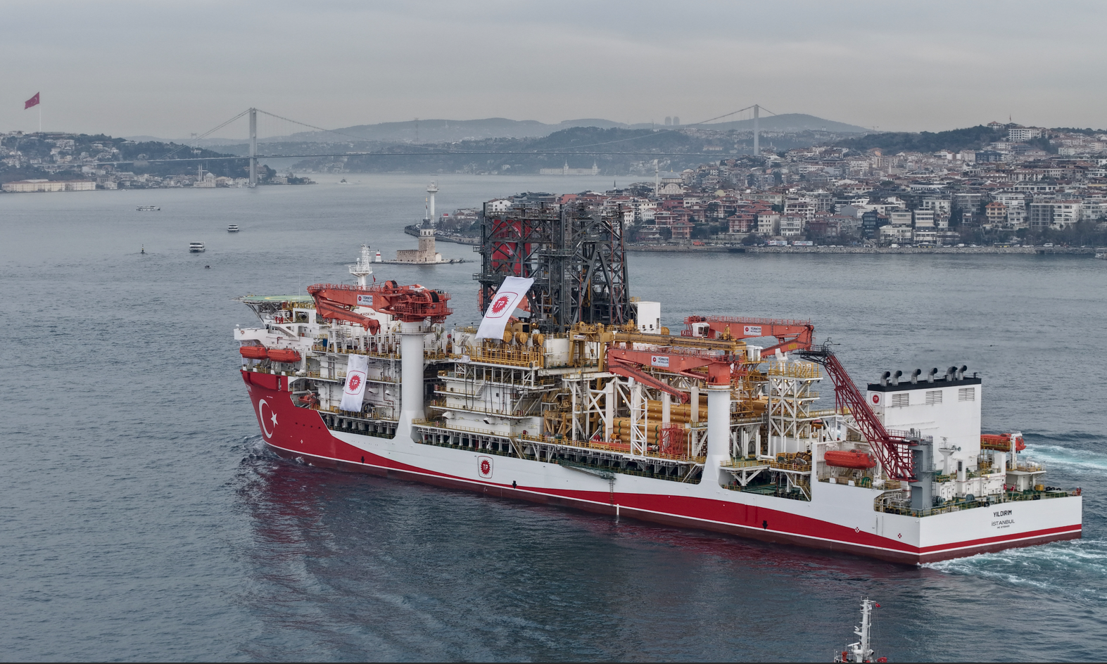 Türkiye'nin arama ve sondaj kabiliyetlerini güçlendirmek amacıyla Fatih, Yavuz, Çağrı Bey, Kanuni ve Abdülhamid Han’ın ardından filoya katılan sondaj gemisi Yıldırım, dün Ege Denizi’nden Çanakkale Boğazı’na giriş yaptı.