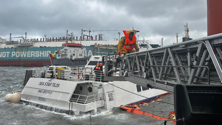 Altınova Tersaneler Bölgesi'nde yabancı bayraklı ‘Sea Star Tilos’ adlı yolcu gemisi, bağlı bulunduğu tersanede bakım ve onarımı yapılırken, fırtına nedeniyle 6 personel iskeleye inemeyip mahsur kaldı.