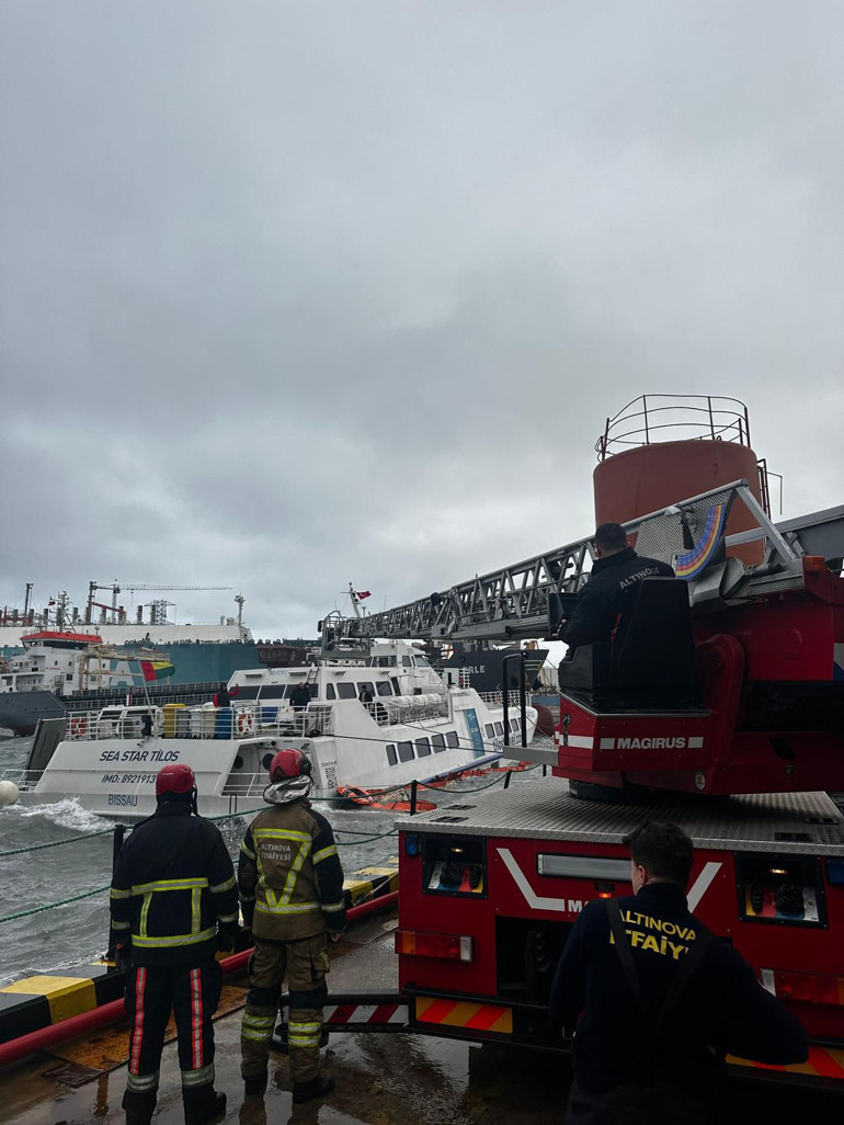 Yalova’nın Altınova ilçesindeki tersanede bakım ve onarımını yaptıkları yolcu gemisinde fırtına nedeniyle mahsur kalan 6 personel, itfaiyeciler tarafından sepetli merdivenle tahliye edildi.