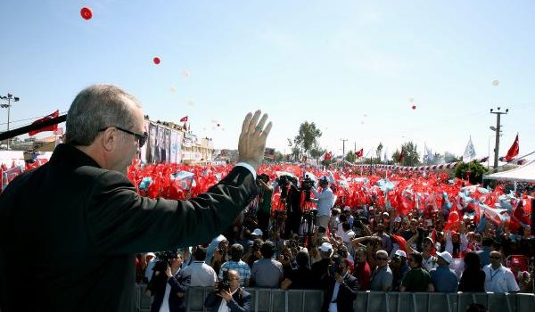 Erdoğan, "Bu millet, karadan gemileri yürüttü. Bu millet boğazın altından Marmaray'ı inşa etti. Bu millet, şimdi Anamur'dan Kuzey Kıbrıs'a yine denizin altından 107 kilometrelik, hamdolsun su naklini gerçekleştiriyor. Bu millet, önümüzdeki yıl Avrasya tünelini yine boğazın altına inşa ediyor. Bu millet bir olursa, iri olursa, beraber olursa, kardeşçe yürürse, hep birlikte Türkiye olursa aşamayacağı hiçbir engel yoktur" şeklinde konuştu.